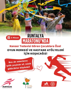 • 5 Nisan 2026 Runtalya Maratonu’nda kanser gibi ağır hastalıklarla mücadele eden çocuklara özel “Oyun Merkezi” ve “Hastane Atölyeleri” için koşacağız!