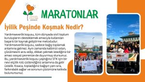 • STK’lar için en önemli kaynak geliştirme organizasyonlarından biri de maratonlardır. Yıl içerisinde çeşitli maratonlar özelinde ‘’Yardımseverlik Koşusu’’na dahil olan bireysel/kurumsal gönüllü koşucular, belirli bir süre içerisinde seçmiş oldukları STK yararına bağış toplayarak, hem maddi destekte bulunabiliyor, hem de farkındalık yaratabiliyorlar.